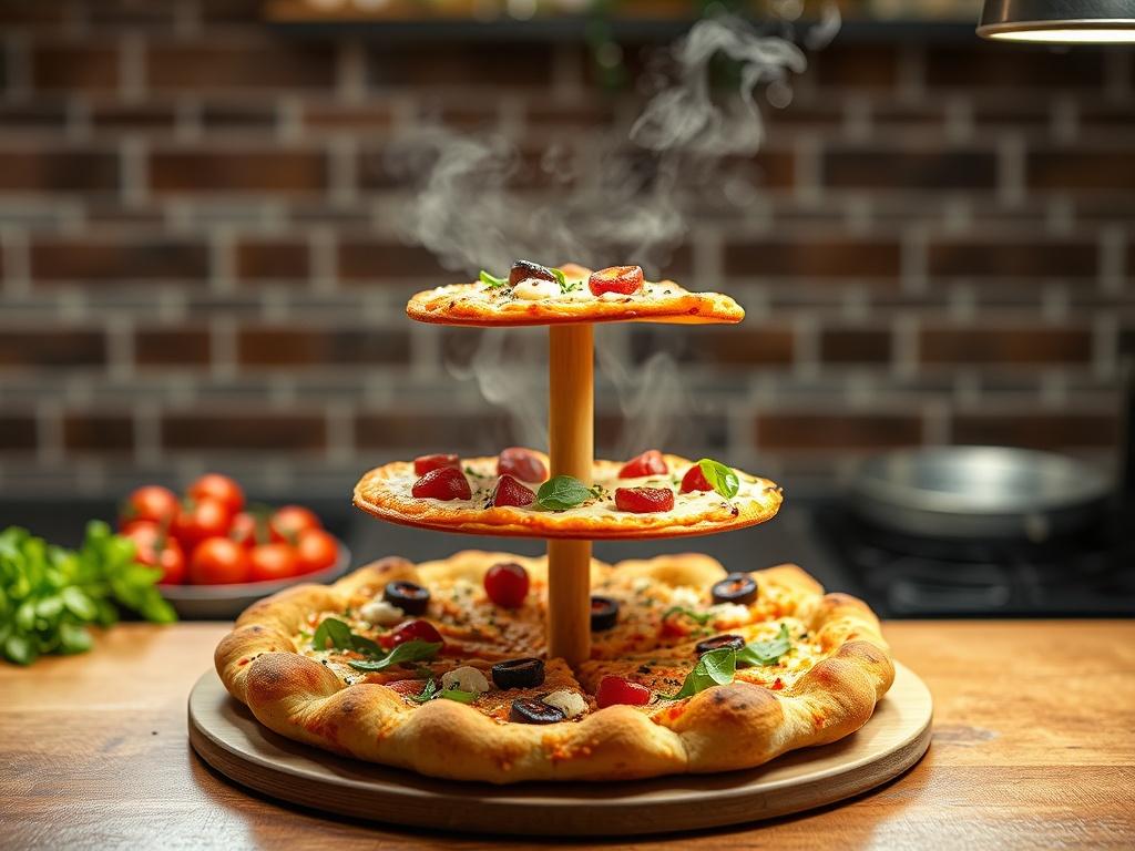 Размер тоже имеет значение. Четырёхэтажная конструкция более сытная, чем обычная пицца, поэтому одна штука спокойно заменяет две классические. Для компании из 4–5 человек достаточно одной большой, чтобы все попробовали по кусочку каждого уровня. Для более многочисленных групп лучше взять разные вкусы, чтобы увеличить разнообразие.